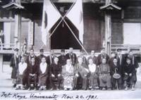The academic exchange between Kwansei Gakuin and Mt. Koya University was the brainchild of Shogaku Hatta, a Literary College student who had attended Mt. Koya Middle School (photo: third Mt. Koya exchange lecture). The first lecture was held at Mt. Koya in the winter of 1921, attended by Prof. Hikoichi Yoshizaki, of the Theological College, and four students. The second was held at Kwansei Gakuin. Two professors and five students from Mt. Koya attended. When planning the welcome dinner, the KG side cabled, “Should it be vegetarian cuisine?” The Mt. Koya contingent answered, “Eat almost every thing.” So they were entertained at a good Chinese restaurant in Kobe.