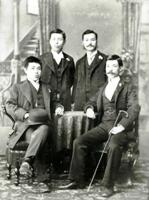 In February 1886, Genta Suzuki (far right in photo), who was studying in Shanghai, met J. W. Lambuth for the first time. Thereafter, he would visit the Lambuths at least twice a week. Lambuth trusted the ability and personality of this young man from Sendai and asked him to come with the family to Japan, where the Methodist Episcopal Church, South, had just decided to open a mission. Suzuki agreed and arrived in Kobe in July with the missionary group. He worked ceaselessly, translating, negotiating with the police, prefectural and municipal offices, hiring employees, and buying necessities. He became the church’s first convert and went to the United States to study. After spending eight years there, he came back to Japan to teach at Kwansei Gakuin, which had by then been founded by W. R. Lambuth, J. W. Lambuth’s son. Suzuki determined to make Kobe his final home, but after just two years he quit the school. “If W. R. Lambuth had been with us in Japan at that time…,” Suzuki mused later in life.